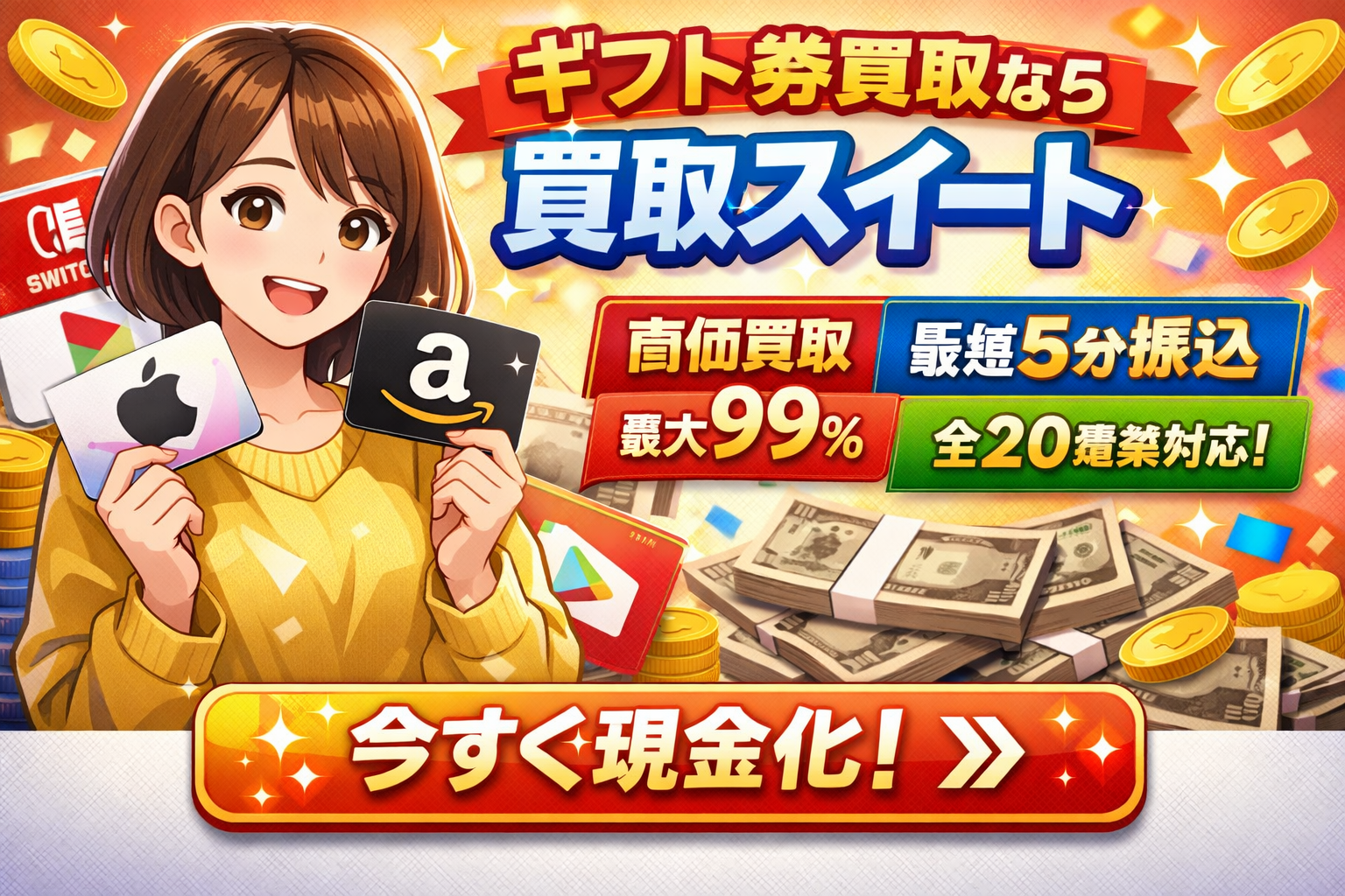 - ギフト券買取おすすめ【買取スイート】最短5分振込&最大99%高価買取|Apple・Amazon・任天堂プリペイド対応